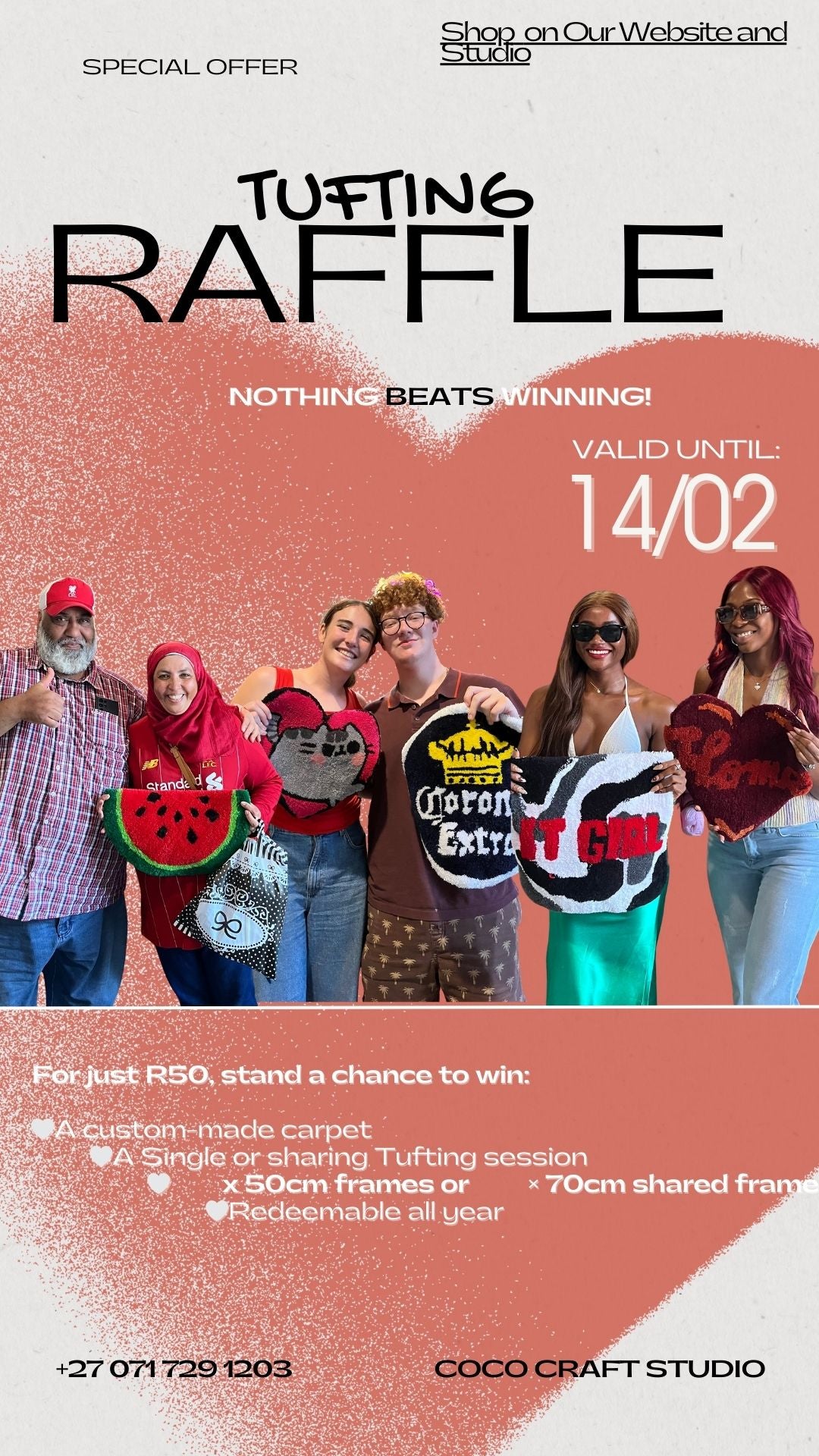 Enter our Tufting Raffle and you could win either a custom-made tufted carpet or a tufting session of your choice at Coco Craft Studio.